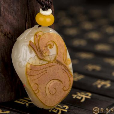 新疆和田玉黄皮籽料挂件,一念之间。玉质温润细腻,皮色饱满。玉雕师利用皮色与白肉的对比,设计成佛魔......