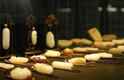 hetianyuziliaodepisehoudu,yibandouzaiyihaomiyixia,chenggezhongxingzhuangfenbuzaiyushibiaomian。ziliaodepise,shiwaibiaodaiyouhuanghesehuoqitasezedeyicenghenbodepi,xiyanghuasuozhi。